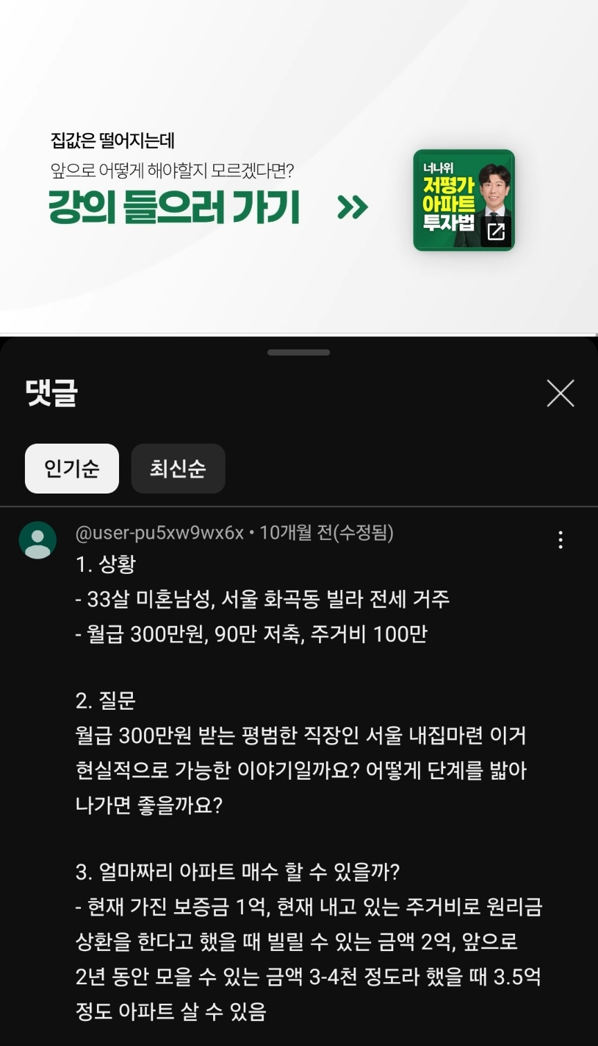 이번에 본 영상 제목은 <이렇게 하면 서울 내집마련 가능합니다> 였다.