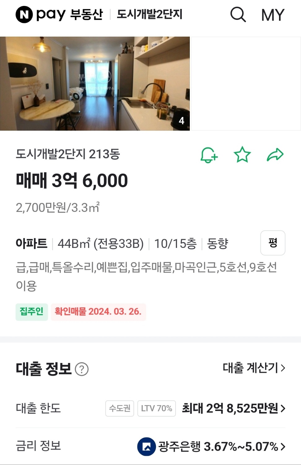 영상이 23년 5월 것이고 당시 너나위님이 올수리된 곳이 있다며 보여주신 곳이 위 매물 같은데 아직도 있다. 캡쳐했을 당시(24년 3월) 3억 6천이었는데, 4월 12일 현재 3.58억에 올라와 있다. 200만 원 내렸네ㅎㅎ. 그런데 매물이 거의 1년 동안 나가지 않았다는 소리인데...사진만 보면 정말 예쁜데 왜일까? 그만큼 수요가 없다는 건가? 아파트인데 1년 동안 나가지 않는다면 환금성 측면에서 너무 안 좋은데...?