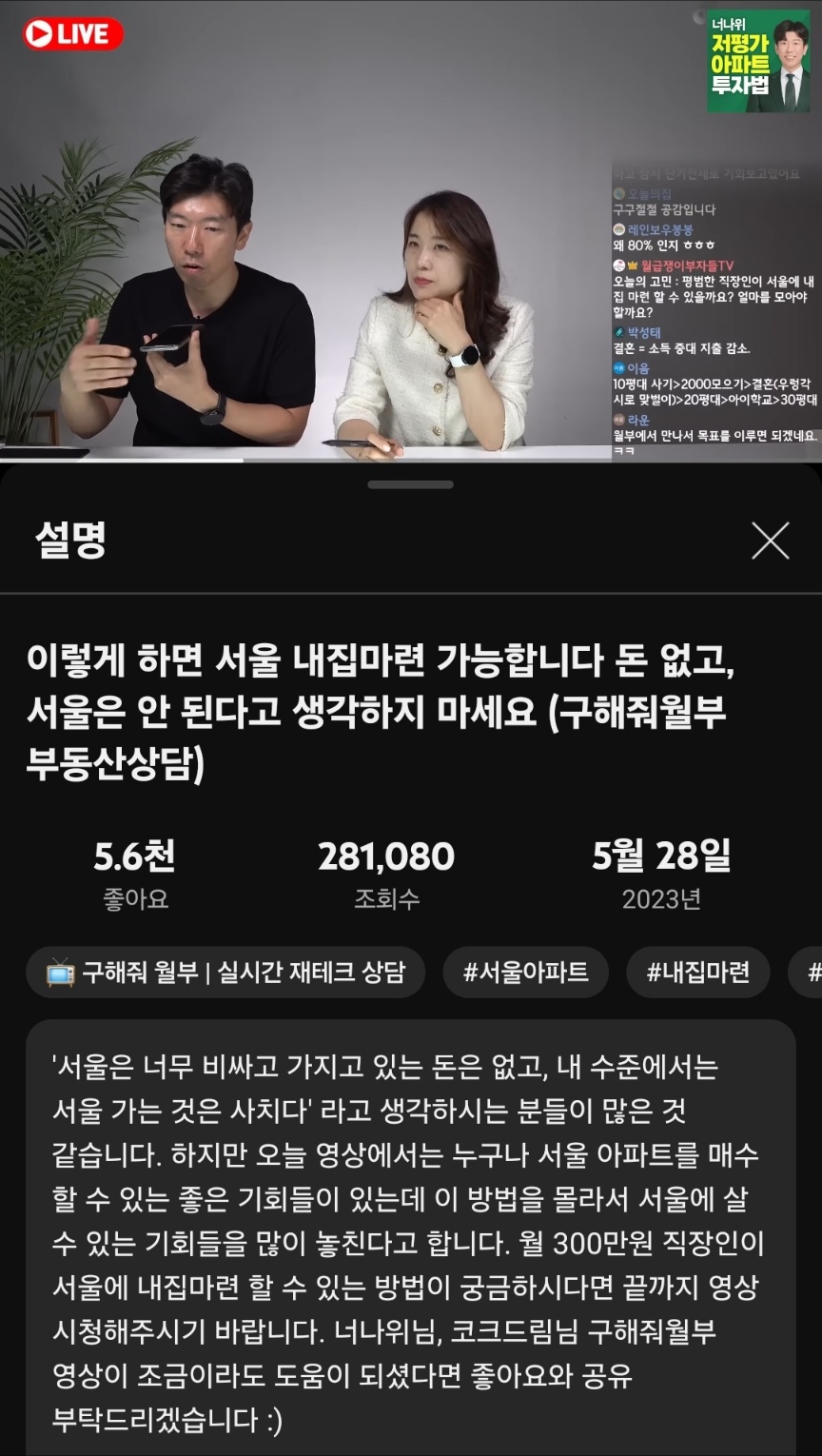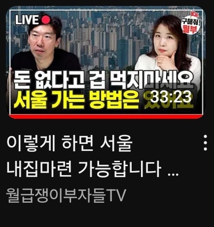이번에 본 영상 제목은 <이렇게 하면 서울 내집마련 가능합니다> 였다.