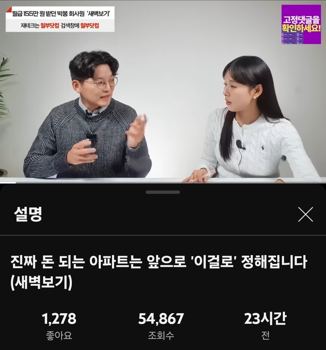 월급쟁이부자들 새벽보기님의 <진짜 돈 되는 아파트는 앞으로 이걸로 정해집니다>라는 제목의 영상을 봤어요. (업로드 24.3.4) 새벽보기님은 월급쟁이부자들의 진행자로도 활동하고 계신데요, 2년 전의 영상에서는 얼굴이 가려져 있었는데 요즘은 정말 활발히 활동하시죠~?